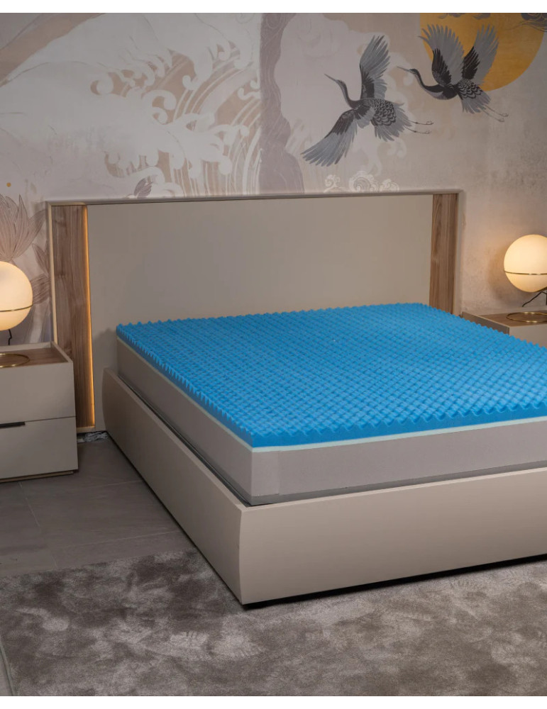 In superficie troviamo uno strato di Memory Aquagel che favorisce adattabilità e accoglienza, assicurando un grado di portanza media e soprattutto una sensazione di freschezza (ideale da utilizzare in estate). Sul lato inferiore invece è posizionato uno strato schiumato di poliuretano ad alta densità alta indeformabile che stabilisce la giusta dispersione del calore.